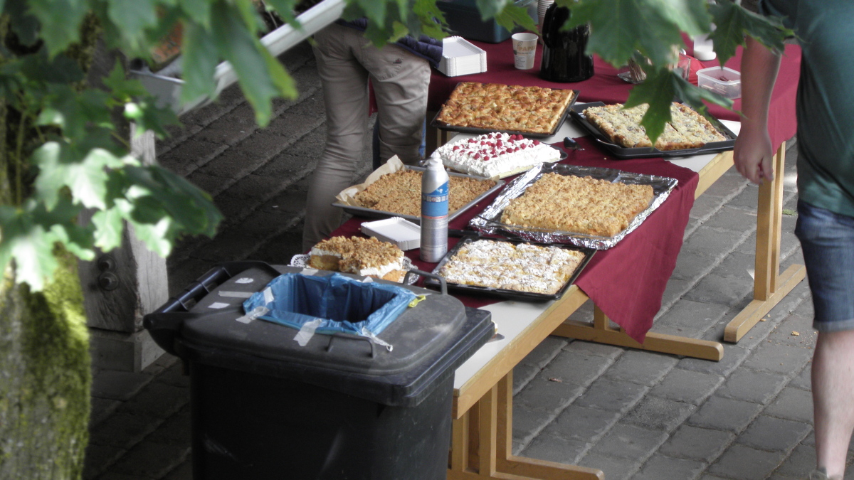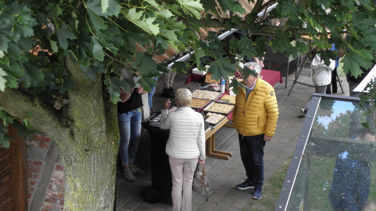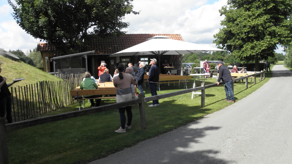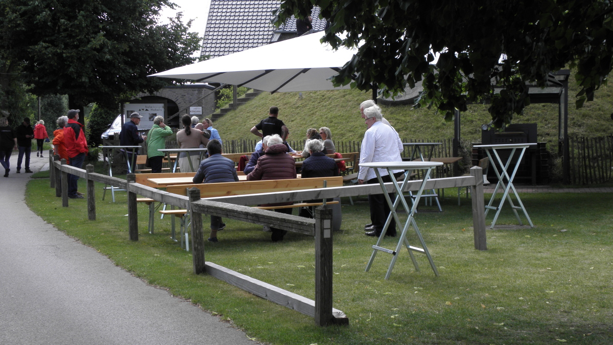 Vielfach wurde diese Führung mit dem Genuss von Kaffee und Kuchen bzw. einem Kaltgetränk und einer leckeren Grillwurst verbunden. Die neuen Sitzgelegenheiten unter dem großen Schirm wurden gerne genutzt. Dieser Bereich wurde immer gut angenommen. Großen Anklang fand auch das ständig wechselnde Kuchenbüfett.