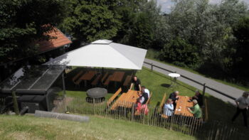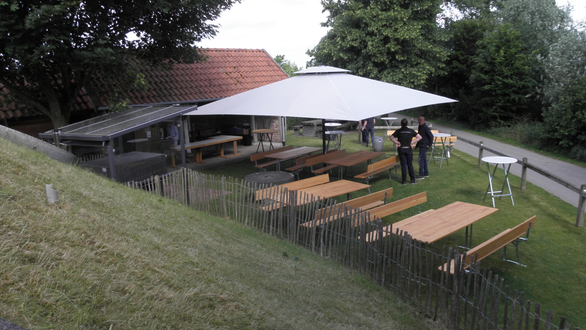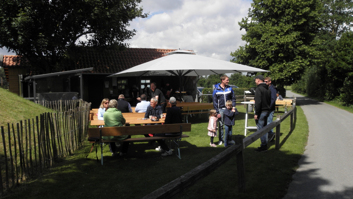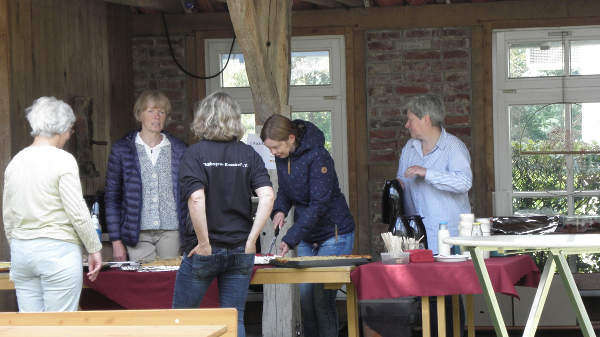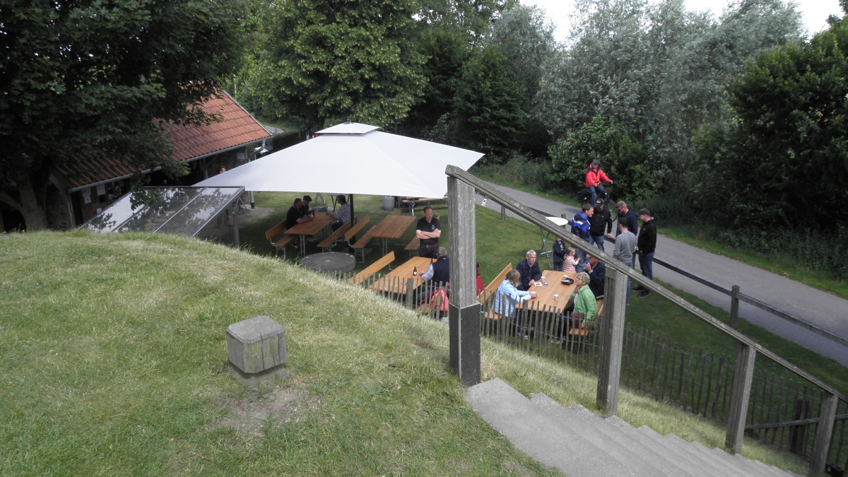 Vielfach wurde diese Führung mit dem Genuss von Kaffee und Kuchen bzw. einem Kaltgetränk und einer leckeren Grillwurst verbunden. Die neuen Sitzgelegenheiten unter dem großen Schirm wurden gerne genutzt. Dieser Bereich wurde immer gut angenommen. Großen Anklang fand auch das ständig wechselnde Kuchenbüfett.