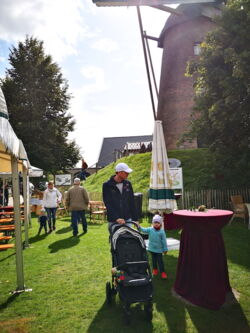 Sofern der Wind ausreicht, wird sich die Mühle den ganzen Tag drehen und ist zur Besichtigung geöffnet.